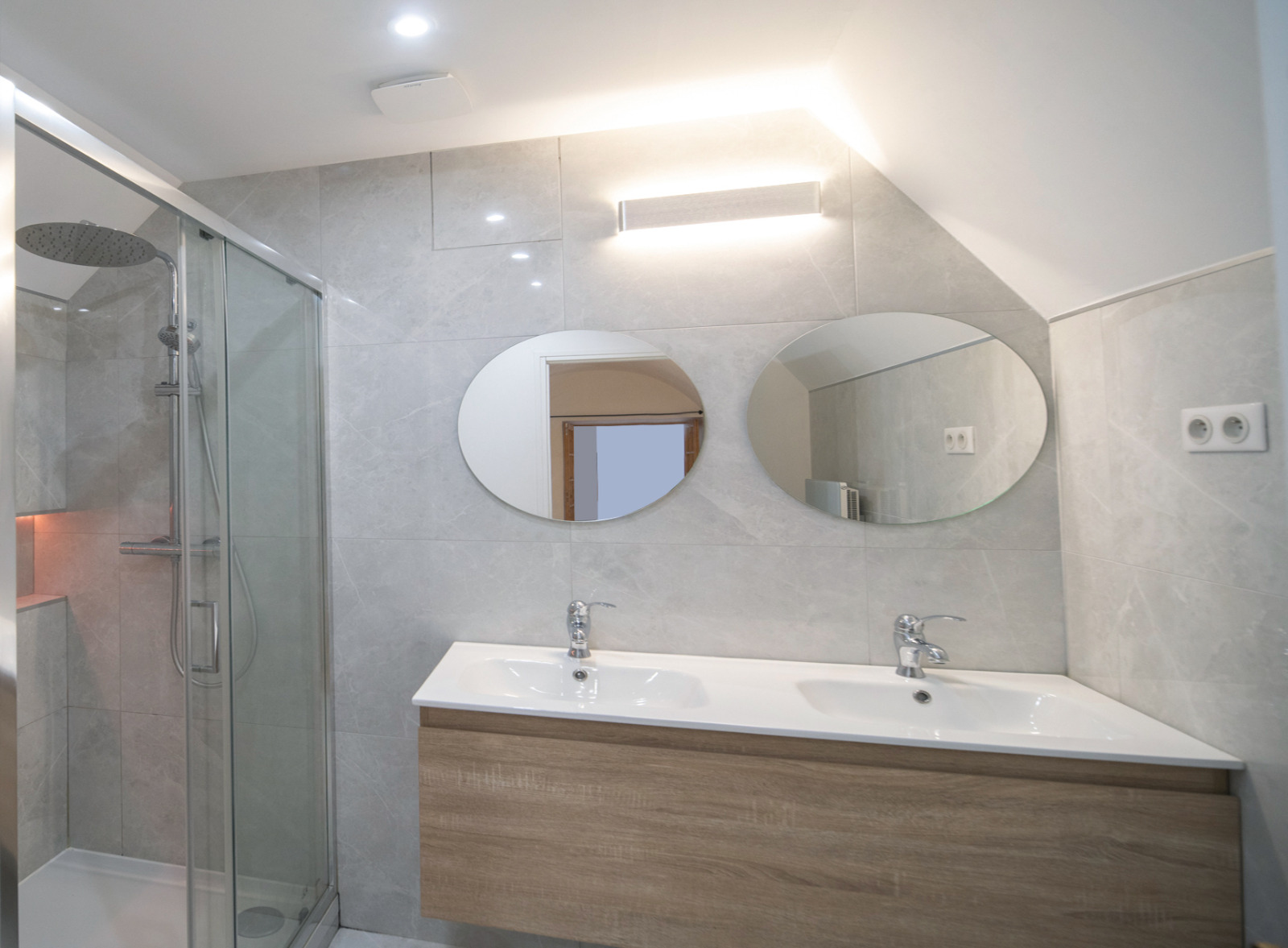 Il se compose d’un salon lumineux orienté sud-ouest, une chambre, une cuisine ouverte équipée, une salle de douche avec double vasques et un WC indépendant.